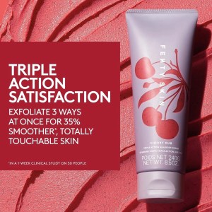 This cherry-powered body scrub exfoliates three ways at once for smoother-looking skin. It buffs, conditions, and nourishes to reveal more visibly even texture and tone in just one week. The crisp, juicy cherry scent is inspired by Barbados cherry. The scrub is clean, vegan, and gluten-free.