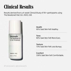 In a clinical study conducted in the USA, 95% of participants reported that their skin felt healthy after using The Deodorant Gel. Additionally, 80% noticed a more even skin tone, 73% experienced smoother skin, and 100% felt comfortable.