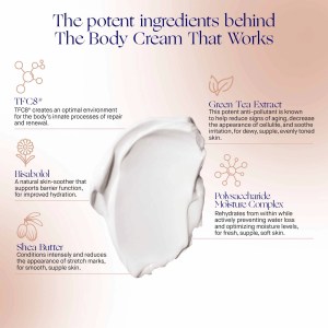 Apply Augustinus Bader The Body Cream daily or according to your skin’s needs. For the ultimate body care ritual, use alongside The Body Oil and The Body Lotion (each sold separately). Massage the cream onto your skin in circular motions until fully absorbed. Enjoy the luxurious feel and the visible results of firmer, toned, and more even skin.
