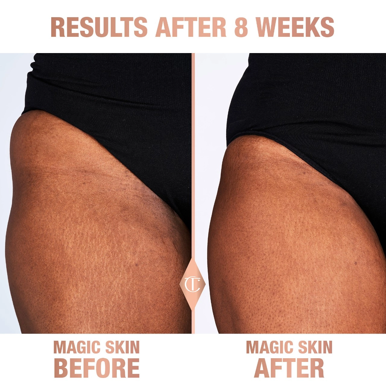 Apply a generous amount of Charlotte Tilbury Magic Body Cream to clean, dry skin. Massage in circular motions until fully absorbed. Use daily for best results.