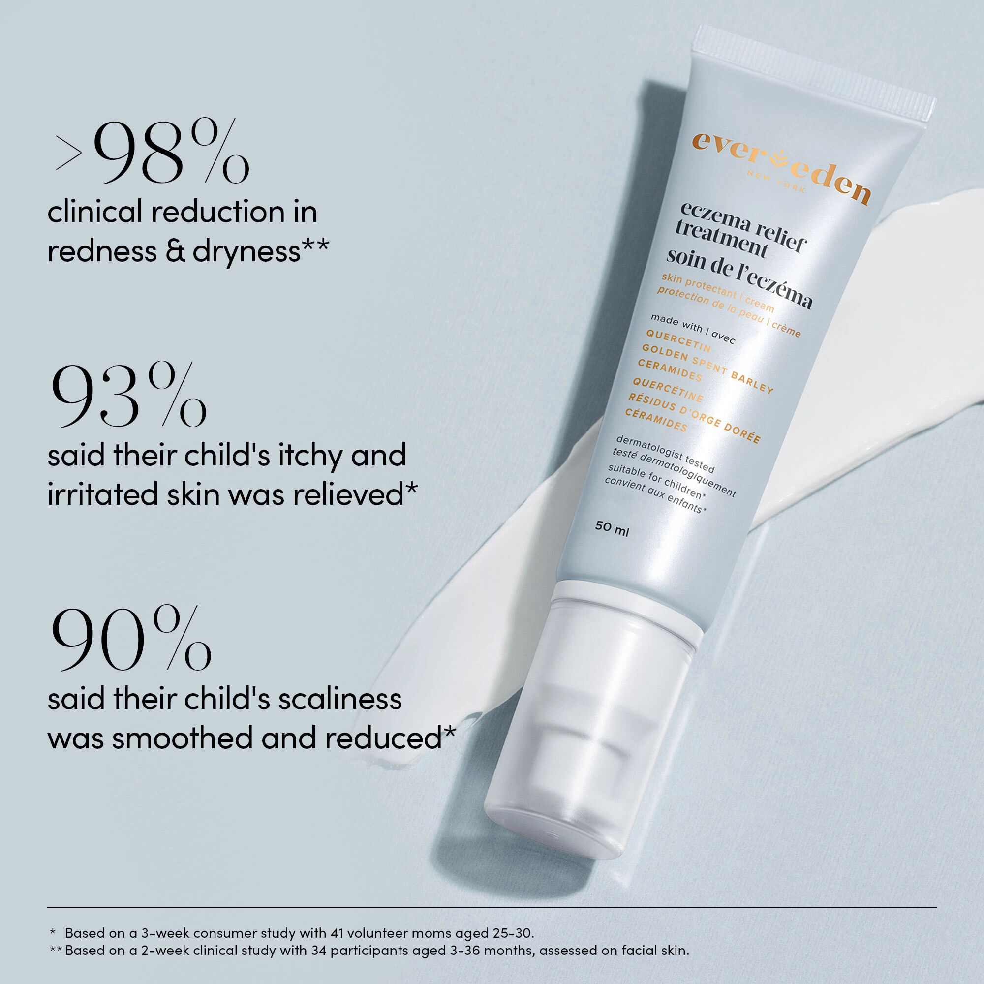 Experience the powerful relief of Evereden Eczema Relief Face and Body Treatment. Formulated with Evereden’s breakthrough Barrier Restore Technology™, this cream provides long-lasting hydration and relief from eczema symptoms. Say goodbye to dry, itchy, and irritated skin and hello to a healthier, more nourished complexion. Suitable for the entire family, this treatment is made by moms in medicine and clinically proven to provide relief.
