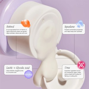 Water/Aqua/Eau, Diethylhexyl Succinate, C12-15 Alkyl Benzoate, Glycolic Acid, Cetearyl Alcohol, Potassium Hydroxide, Glyceryl Stearate, PEG-100 Stearate, Retinol, Lactic Acid, Urea, Squalane, Glycerin, Phospholipids, Ubiquinone, Camellia Sinensis (Green Tea) Leaf Extract, Tocopheryl Acetate (Vitamin E), C13-14 Isoparaffin, Caprylic/Capric Triglyceride, Polyacrylamide, Laureth-7, Cetearyl Glucoside, Xanthan Gum, Potassium Sorbate, Sodium Benzoate, Phenoxyethanol, Disodium EDTA.