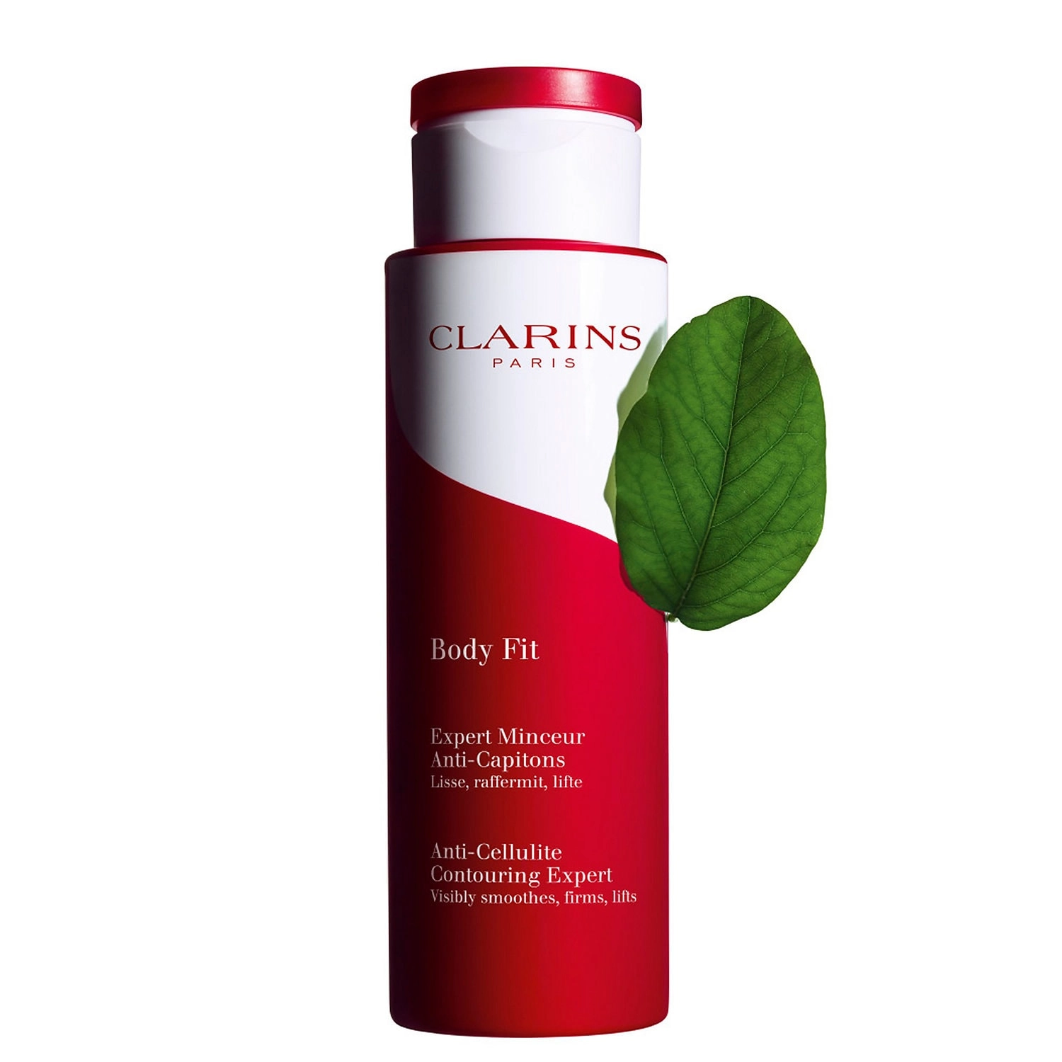 Apply Body Fit using Clarins’ exclusive Self-Massage Body Contouring Method on the product insert.