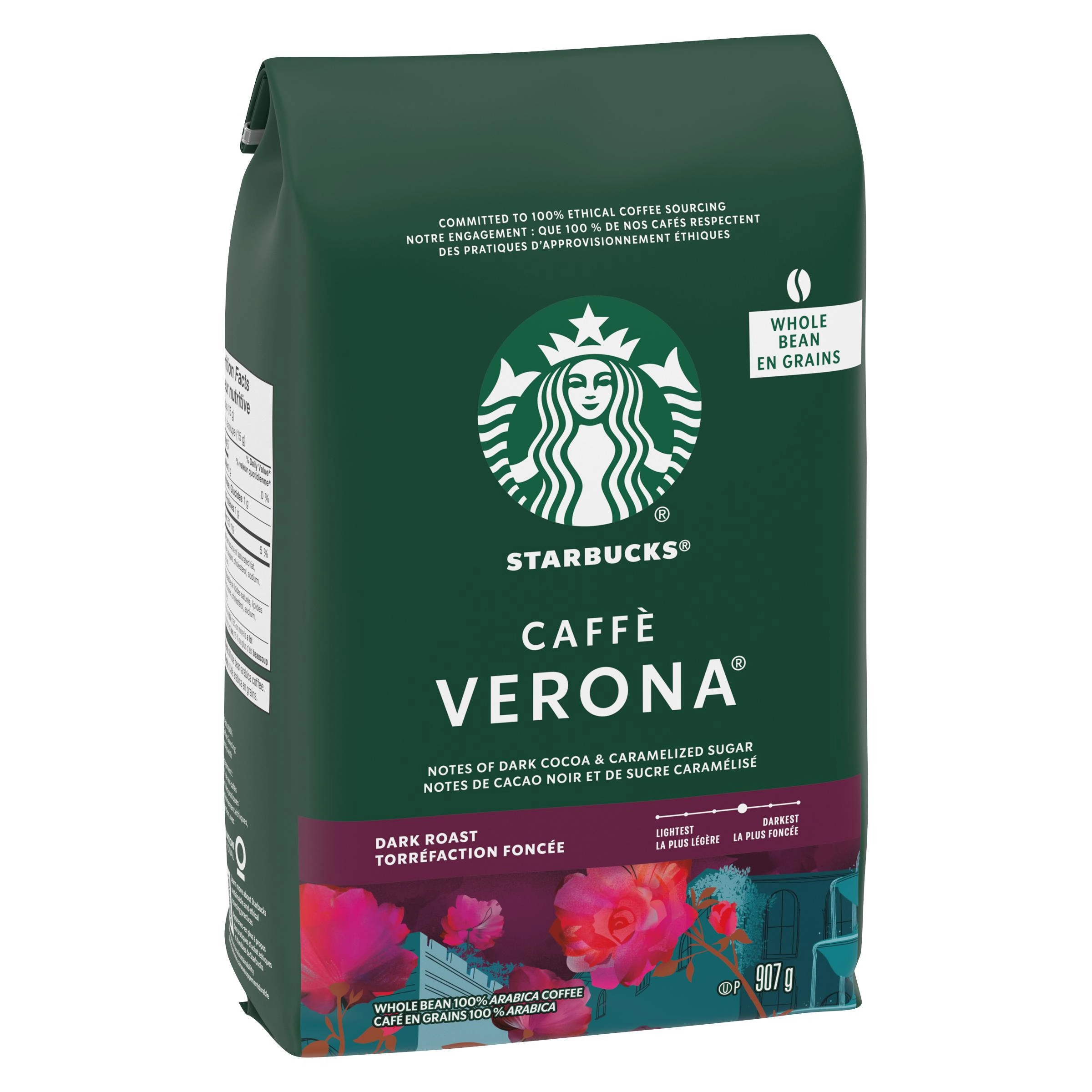 Bring the Starbucks experience into your home with Starbucks Caffè Verona Dark Roast Coffee. Order your 907g bag of whole bean coffee today and enjoy the rich and satisfying flavors that have made Starbucks a household name.