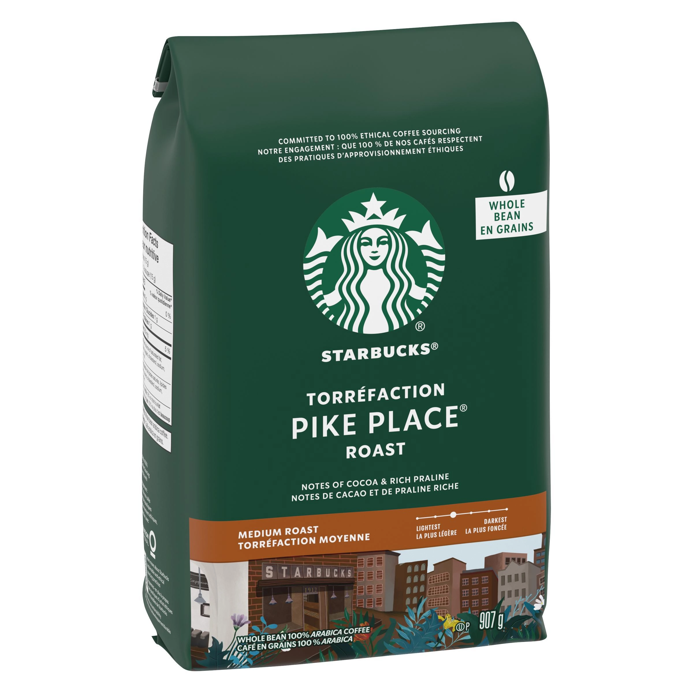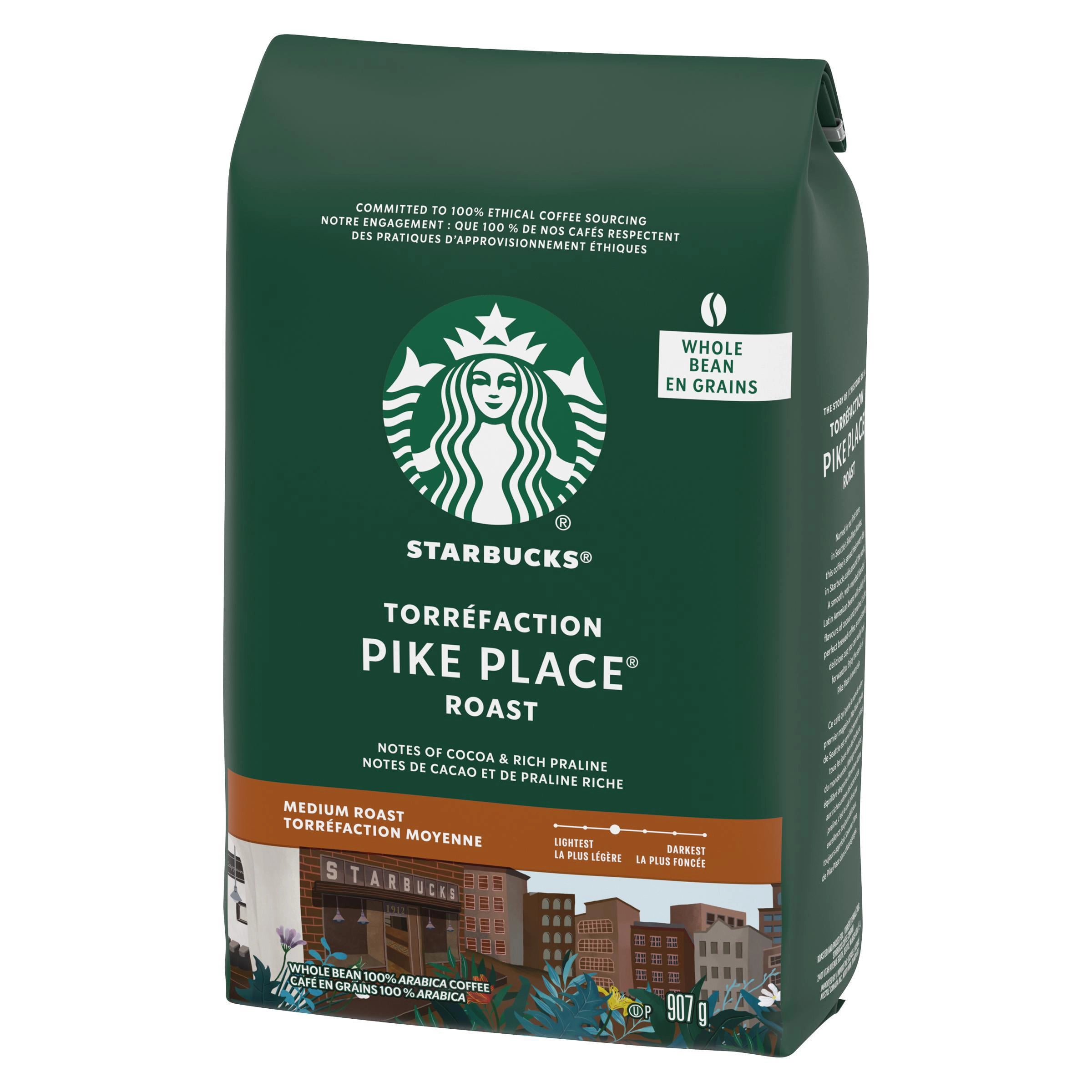 Indulge in the smooth and balanced flavors of Starbucks Pike Place Roast Coffee. Made with 100% Arabica beans, this medium roast is a love letter to Starbucks’ first store in Seattle’s Pike Place Market. With subtle hints of cocoa and toasted nuts, this coffee is perfect for your morning rituals and afternoon coffee breaks.