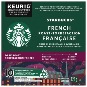 Elevate your coffee experience with Starbucks French Roast Dark Roast Ground Coffee. Order your 10 ct box of K-Cup Pods today and savor the bold and flavorful taste of this premium coffee.