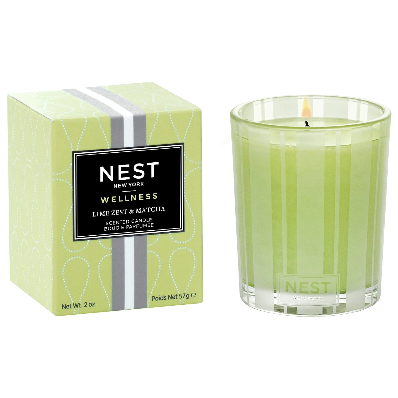 To enjoy the NEST New York Lime Zest & Matcha Votive Candle: