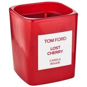 The ingredients of the TOM FORD Lost Cherry Candle include black cherry, tonka bean, almond, Turkish rose, and Jasmine sambac.