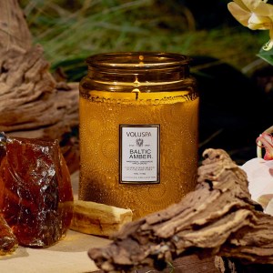 Indulge in the captivating scent of the VOLUSPA Baltic Amber Glass Candle. This luxurious candle will transport you to golden hour with its sensual blend of honeyed amber resin, rich sandalwood, and smoldering vanilla orchid. Hand-poured in the USA, this candle is crafted with a clean-burning coconut wax blend and features a 100% natural wick.