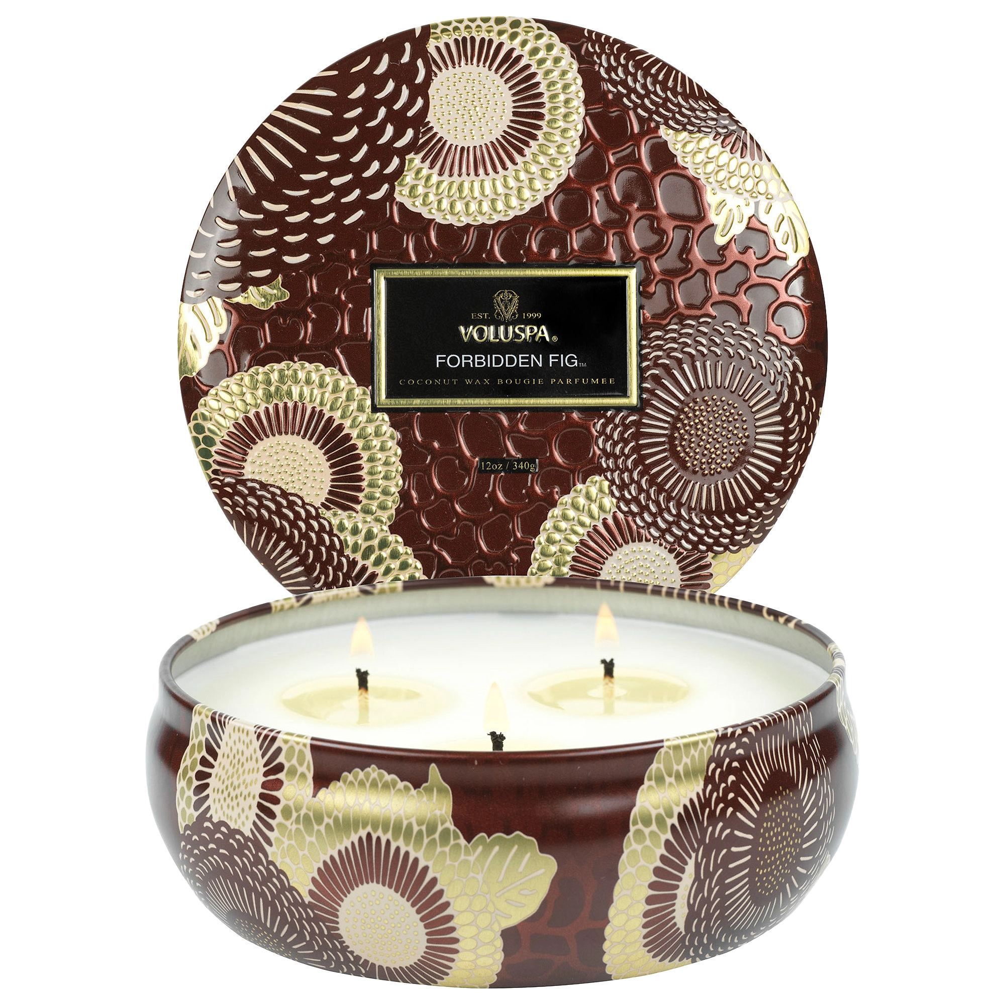 Unearth the pure magnificence of the wild fig tree with VOLUSPA’s Forbidden Fig Decorative Tin Candle. This vegan candle features a floral scent that combines the essence of plump wild berries and fallen crushed leaves, creating an aromatic fragrance that is sweet and alluring. Hand-poured in the USA, this candle is made with VOLUSPA’s clean burning coconut wax blend, ensuring a long-lasting and eco-friendly burn. The decorative tin and lid keep the candle dust-free when not in use, while the 100-percent natural wicks provide a clean and even burn.