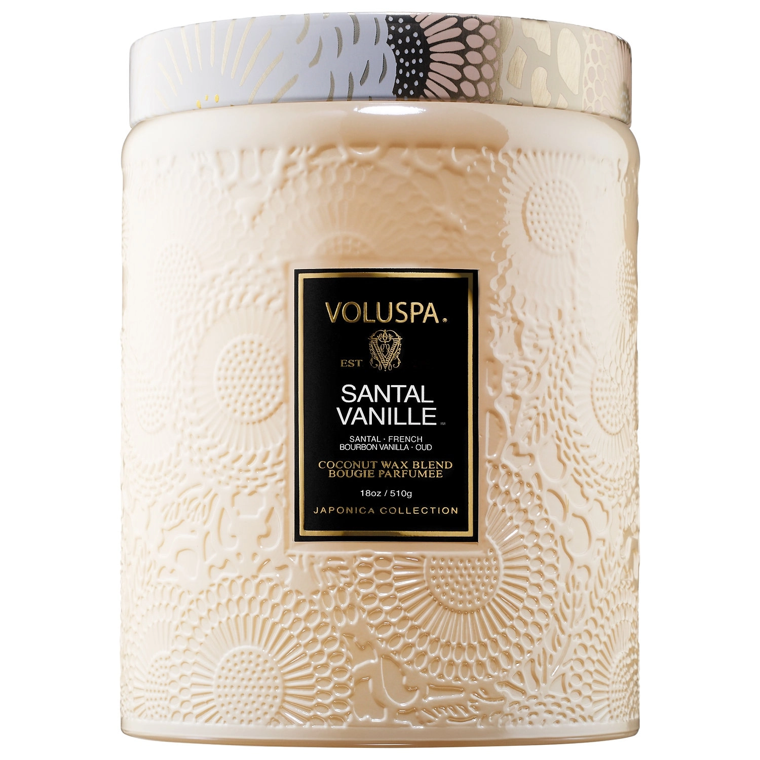 The VOLUSPA Santal Vanille Glass Jar Candle is made with a clean-burning coconut wax blend and features 100 percent natural wicks. It is crafted with the highest quality ingredients to ensure a luxurious and long-lasting fragrance experience.