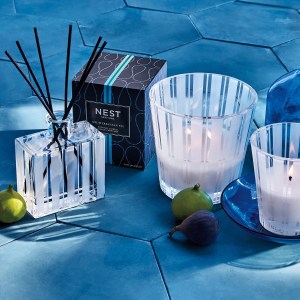 Captivate your senses with the NEST New York Mediterranean Fig Reed Diffuser. Immerse yourself in the lush aromas of the Mediterranean landscape, as crushed fig leaves, blue cypress, and essence of turquoise waters transport you to a serene oasis.