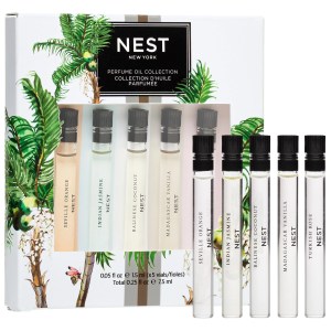 Embark on a sensorial journey with the NEST New York Mini Perfume Oil Discovery Sampler Set. This set features five exquisite perfume oils, each crafted with a single-note ingredient from special regions around the globe. Nurturing baobab oil enhances the fragrance experience, leaving your skin indulged and beautifully scented. Discover the captivating aromas of Balinese Coconut, Turkish Rose, Seville Orange, Indian Jasmine, and Madagascar Vanilla.