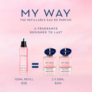 Elevate your fragrance collection with the Armani Beauty My Way Eau de Parfum. Experience the blend of consciously sourced ingredients from around the world, including Egyptian orange blossom, Indian tuberose, and vanilla from Madagascar. The elegant bottle, adorned with a blue and gold cap, symbolizes the connections we make on our unique paths. Refill your bottle effortlessly with the 150 mL refill bottle, reducing carbon emissions by -60%* and plastic usage by -64%*. Embrace the world of Armani with this luxurious and sustainable perfume.