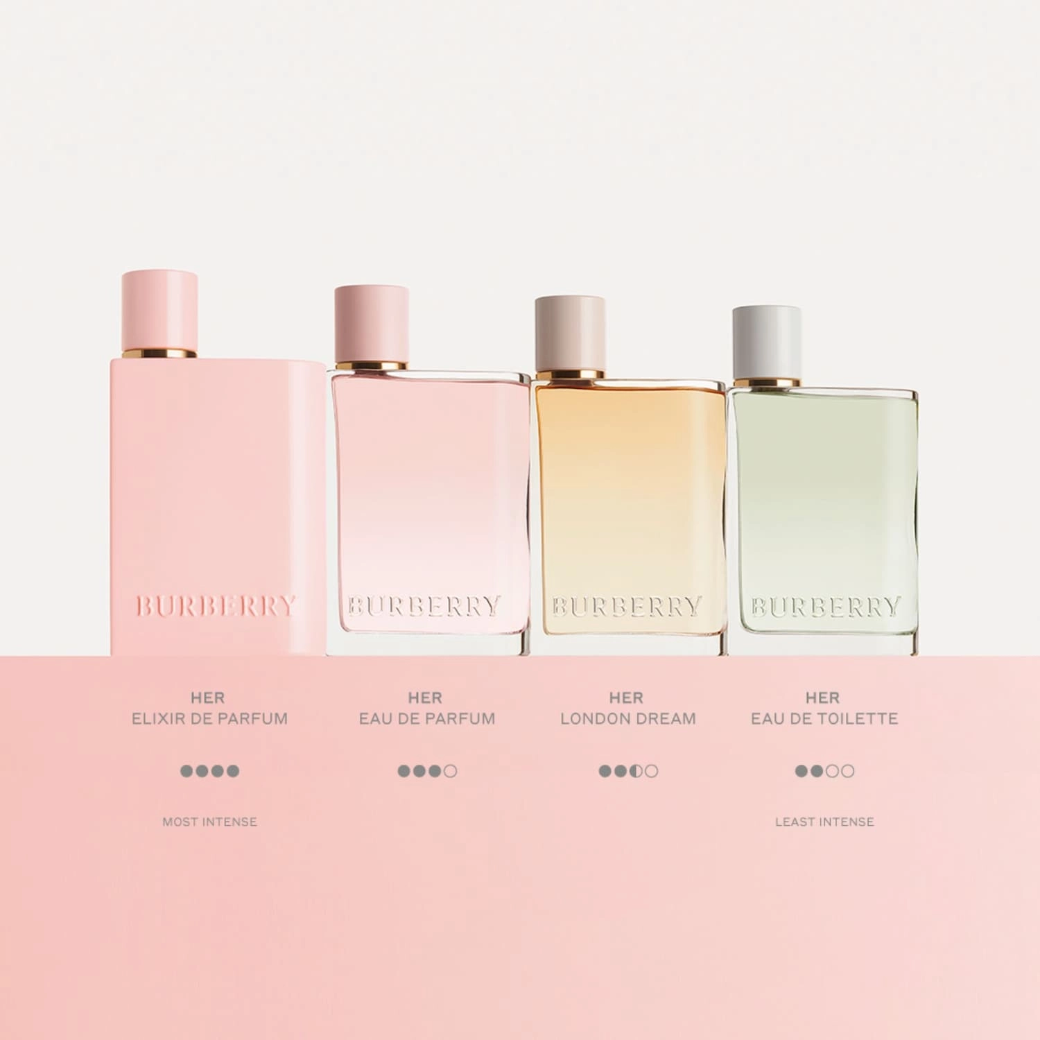 Introducing BURBERRY Her Eau De Toilette, a fragrance that captures the essence of the modern woman. With its blooming peony notes, juicy green pear, and delicate rose and honeysuckle, this scent is a celebration of femininity. The woody base adds a touch of addiction, making it irresistible.