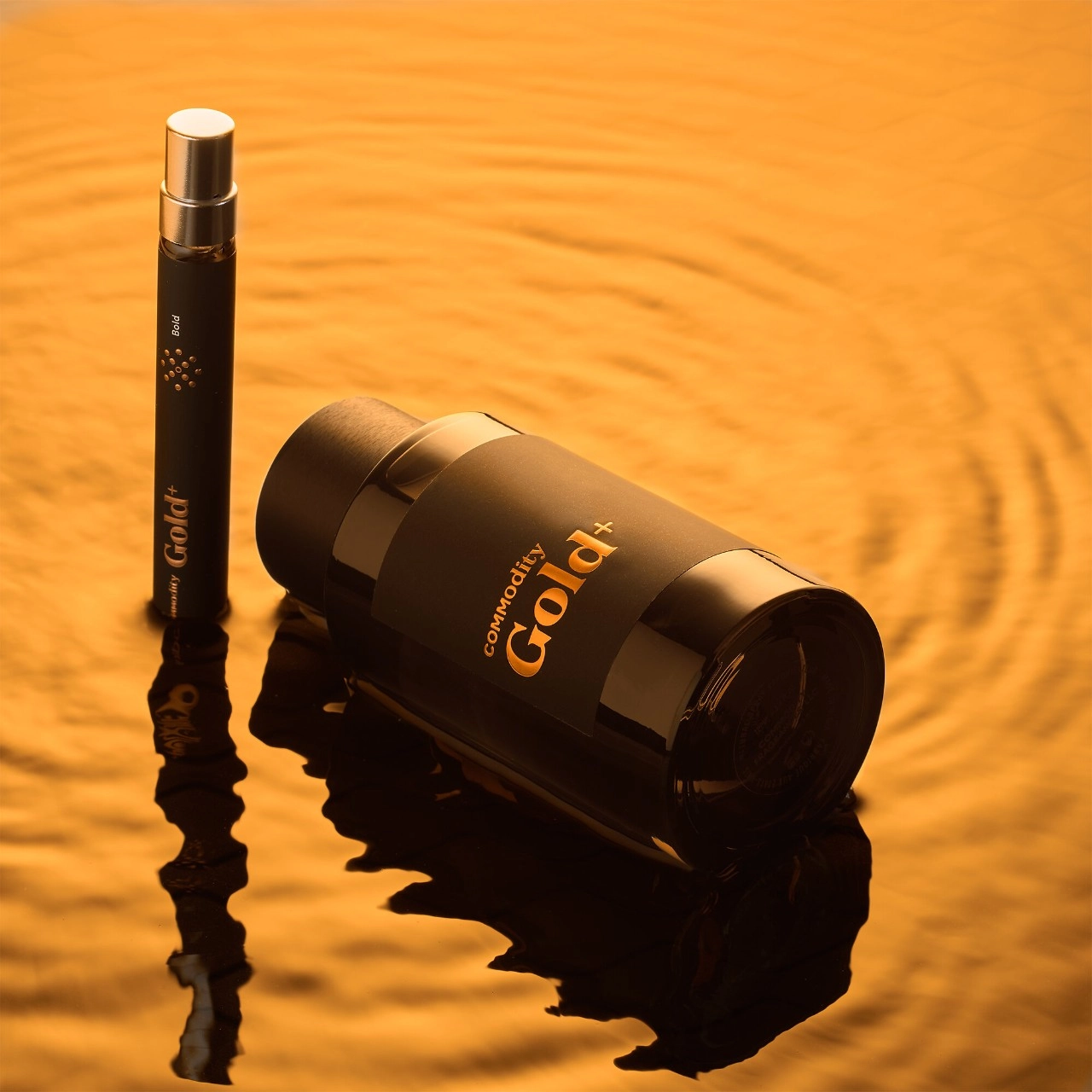 Experience the luxurious and captivating scent of Commodity Gold+ Bold Travel Spray. This unisex perfume is designed to make a statement with its bold and indulgent fragrance. With a blend of vanilla, sandalwood, and amber, this perfume is intensified with the addition of nutmeg, saffron, and patchouli. Let the warm and spicy notes envelop you, leaving behind a trail of smoke, heat, and admiration.