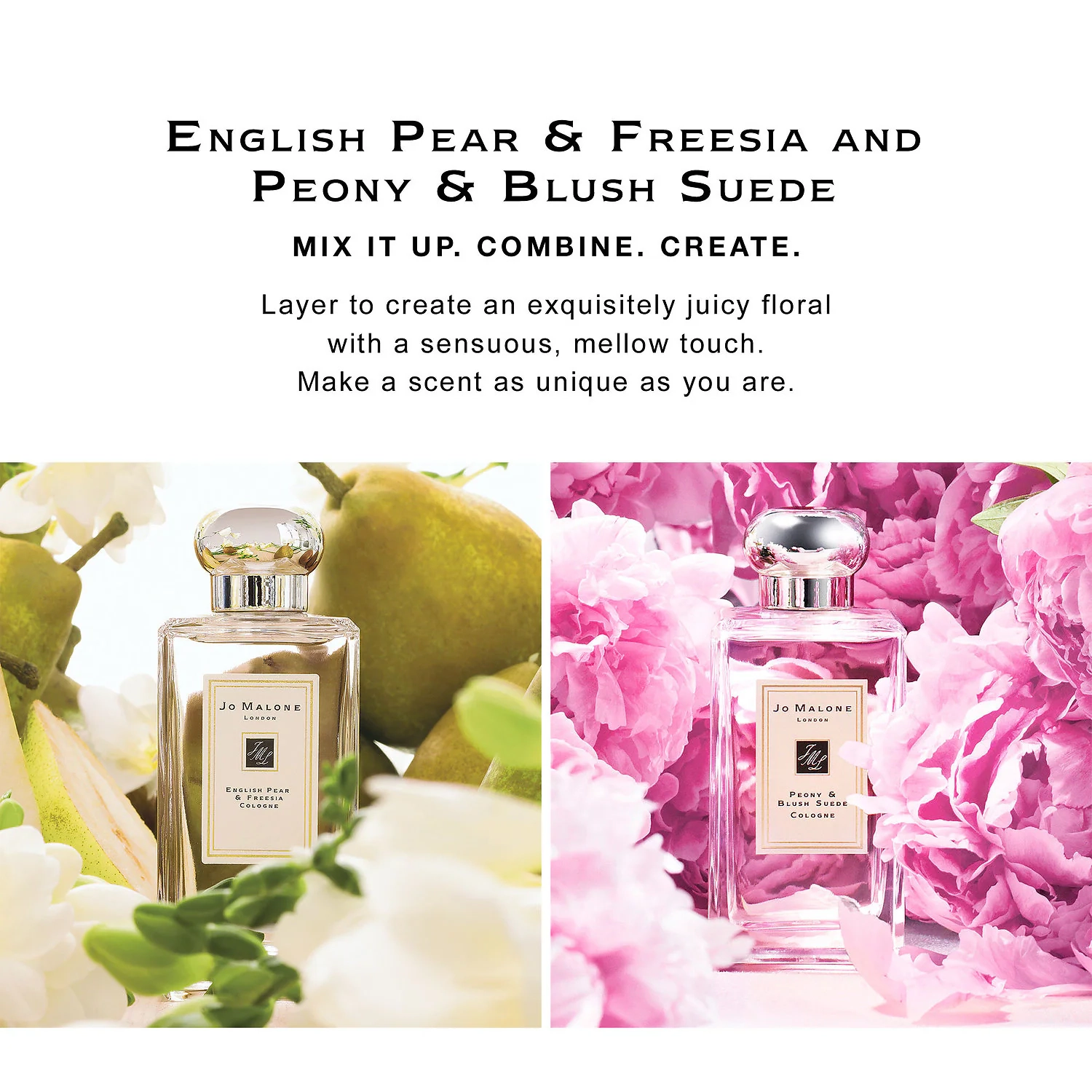 Experience the essence of charm with Jo Malone London Peony & Blush Suede Cologne. This exquisite fragrance features voluptuous peonies, flirtatious and seductive, complemented by the juicy bite of red apple and the opulence of jasmine, rose, and gillyflower. The sensuality of soft, blush suede adds an irresistible touch.
