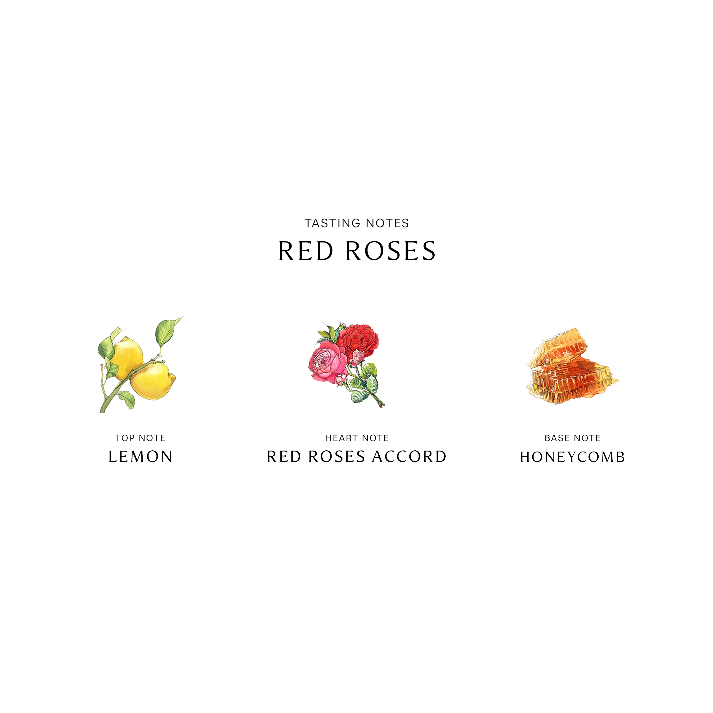 – Key notes of lemon, scarlet velvet rose, and honeycomb