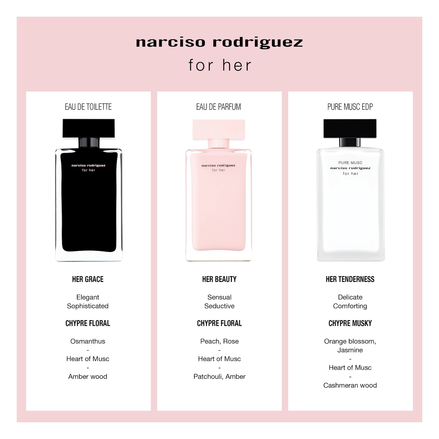 – Emphasizes the signature floral heart of musc from the for her fragrance