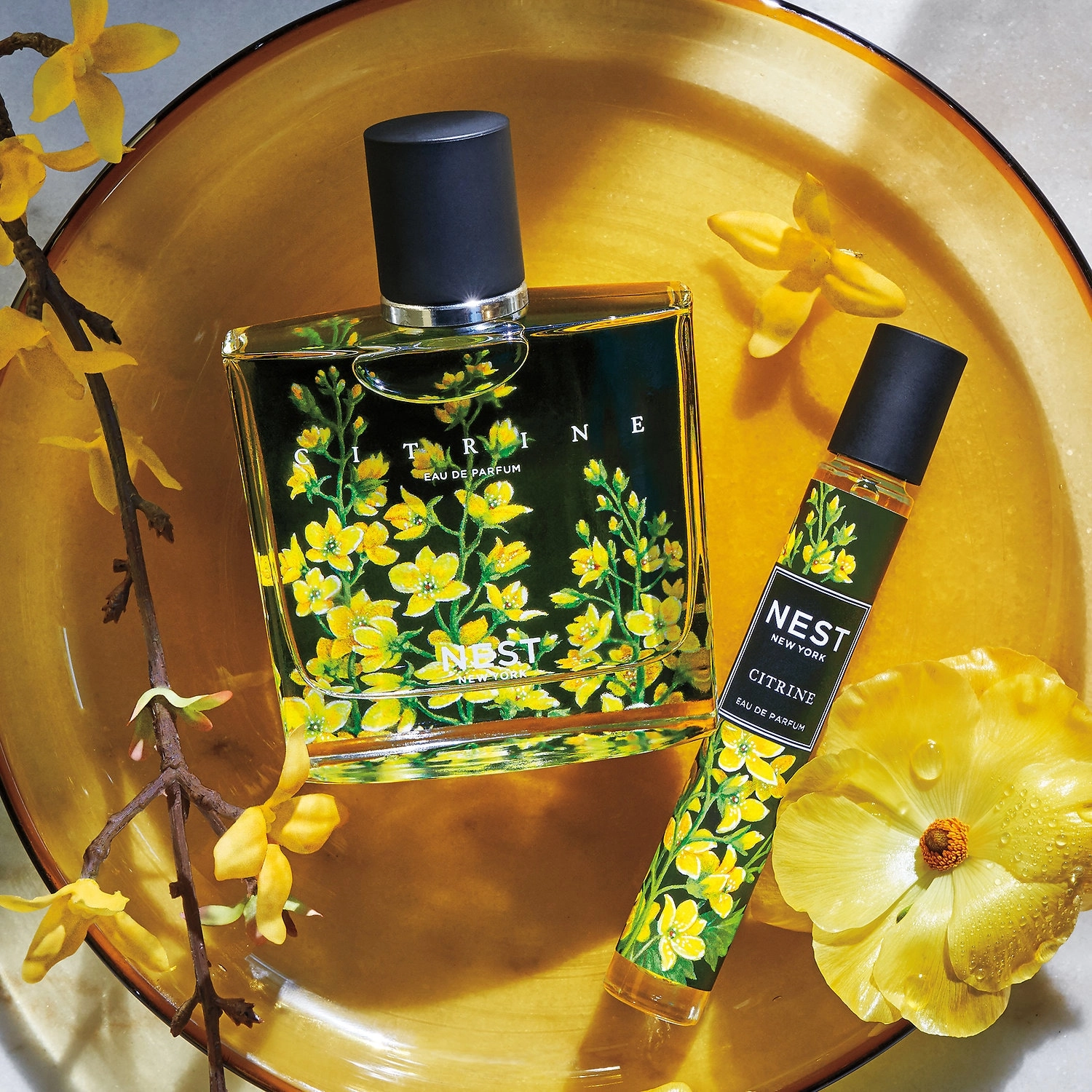 The ingredients of NEST New York Citrine Eau de Parfum include lemon blossom, lotus flower, freesia, morning dew, and precious woods. These carefully selected ingredients create a harmonious blend that captures the essence of freshness and vitality.