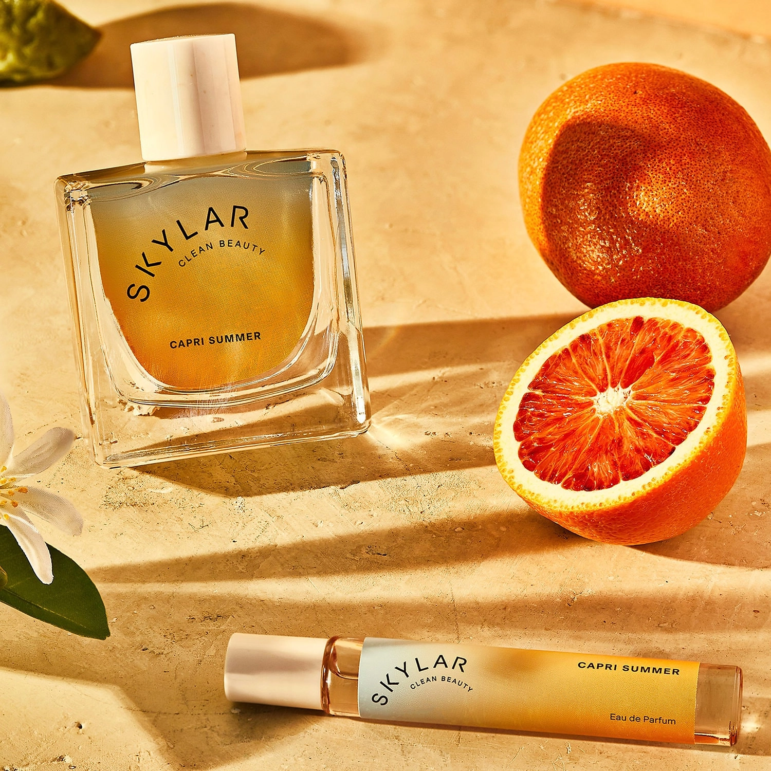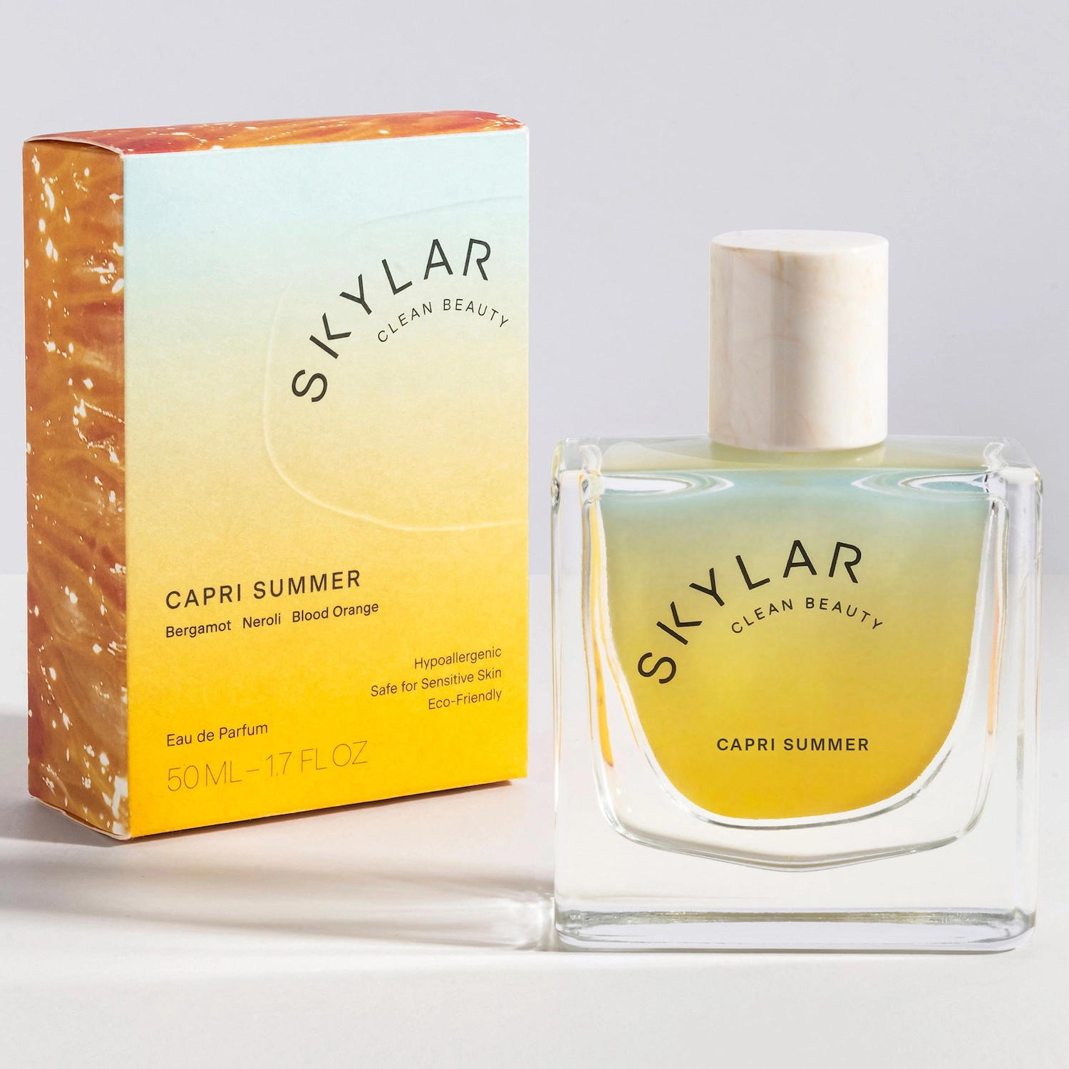 Indulge in the essence of summer with SKYLAR Capri Summer Eau De Parfum. This 1.7 oz/50 mL fragrance captures the warmth of the sun and the refreshing scent of citrus fruits. Its clean, vegan formula is perfect for sensitive skin, and its long-lasting scent will keep you feeling fresh all day.