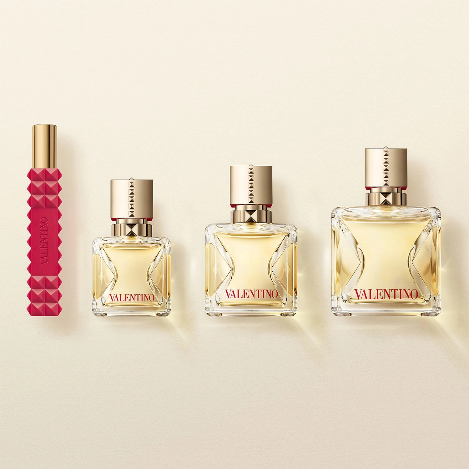 Indulge in the captivating scent of Valentino Voce Viva Eau de Parfum. This fragrance is a celebration of femininity, combining couture orange blossom absolute, golden gardenia, Italian bergamot, and mandarin. The unexpected cool note of crystal moss accord and vanilla adds an addictive touch that lingers on the skin.