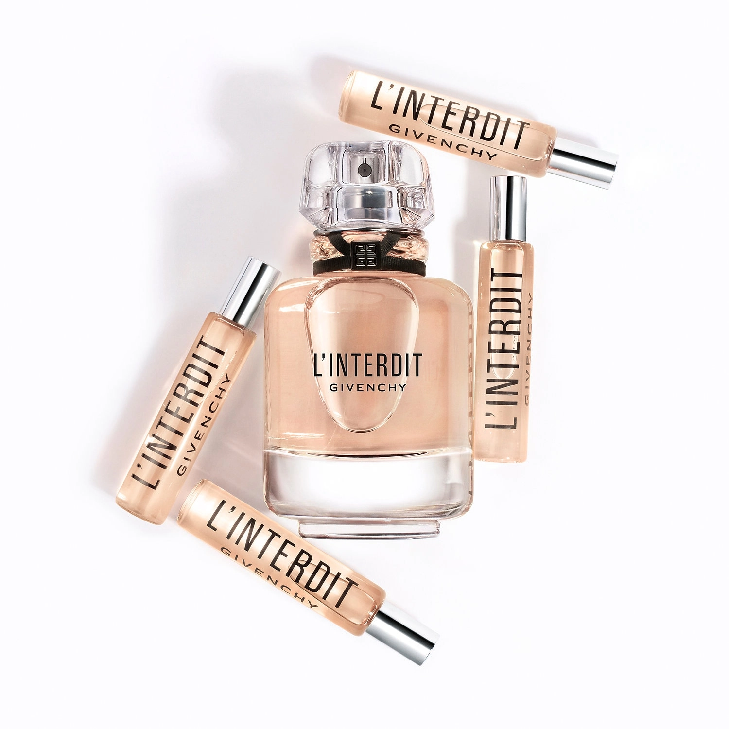 The bottle of Givenchy L’Interdit Eau de Parfum Rollerball is an homage to Hubert de Givenchy’s first perfume, L’Interdit, from 1957. The modern version dares you to forbid yourself of nothing and allow no rules.