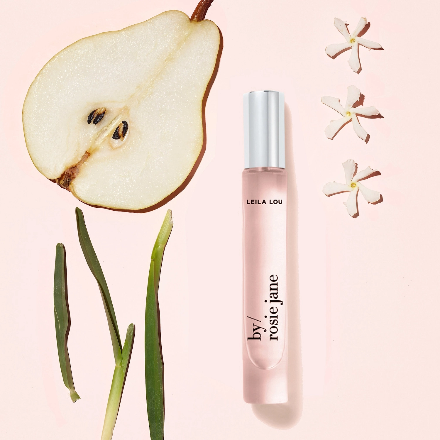 Experience the Leila Lou fragrance family, characterized by its floral scent with fruity undertones. Key notes of pear, jasmine, and fresh-cut grass create a unique and captivating aroma that is perfect for any occasion.