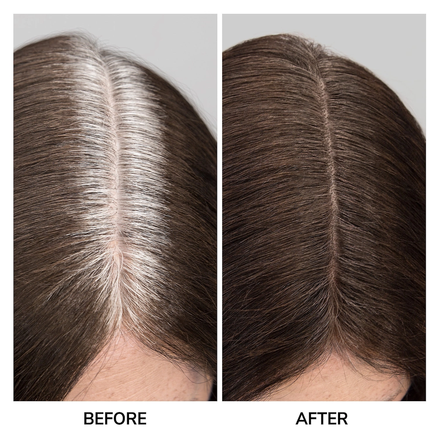 This root coverup powder contains reflective crystals and pigments that provide multidimensional, natural-looking coverage of grays and roots. The zinc stearate anchors the pigment to the hair, while the emollient blend adds shine and makes the powder waterproof and transfer-resistant. It is free of parabens, formaldehydes, phthalates, and sulfates. This product is also vegan, gluten-free, cruelty-free, and comes in recyclable packaging.