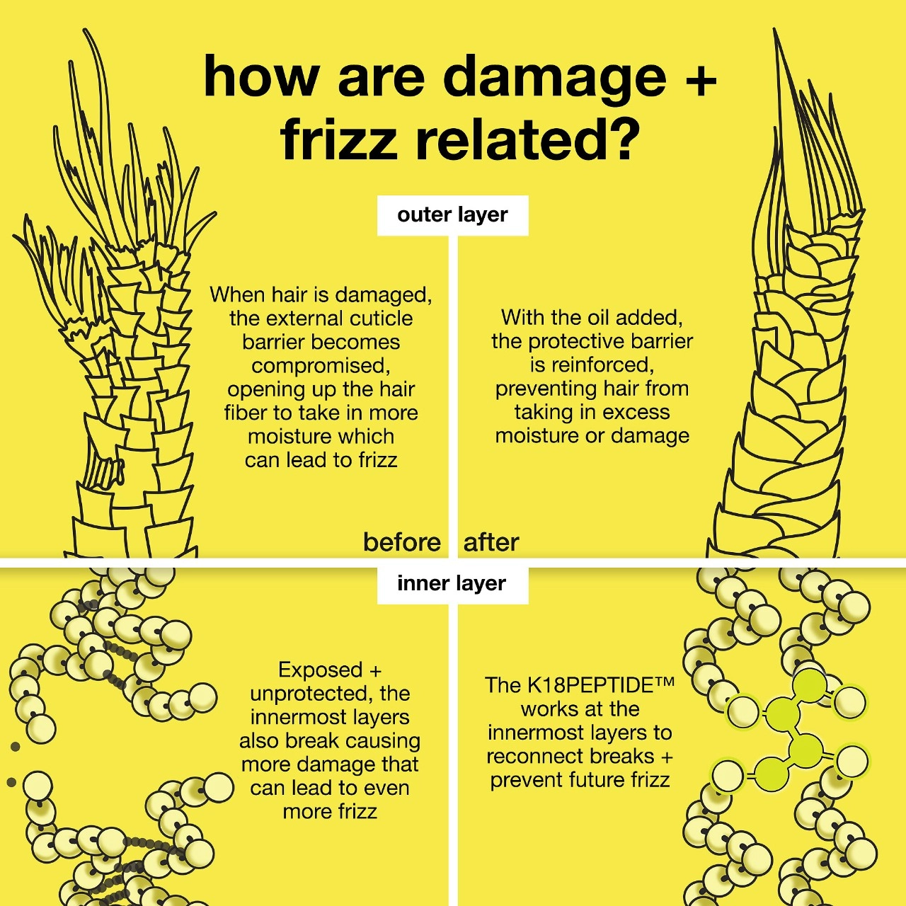 - K18PEPTIDE™: Reverses hair damage that causes frizz, promotes strength and smoothness.