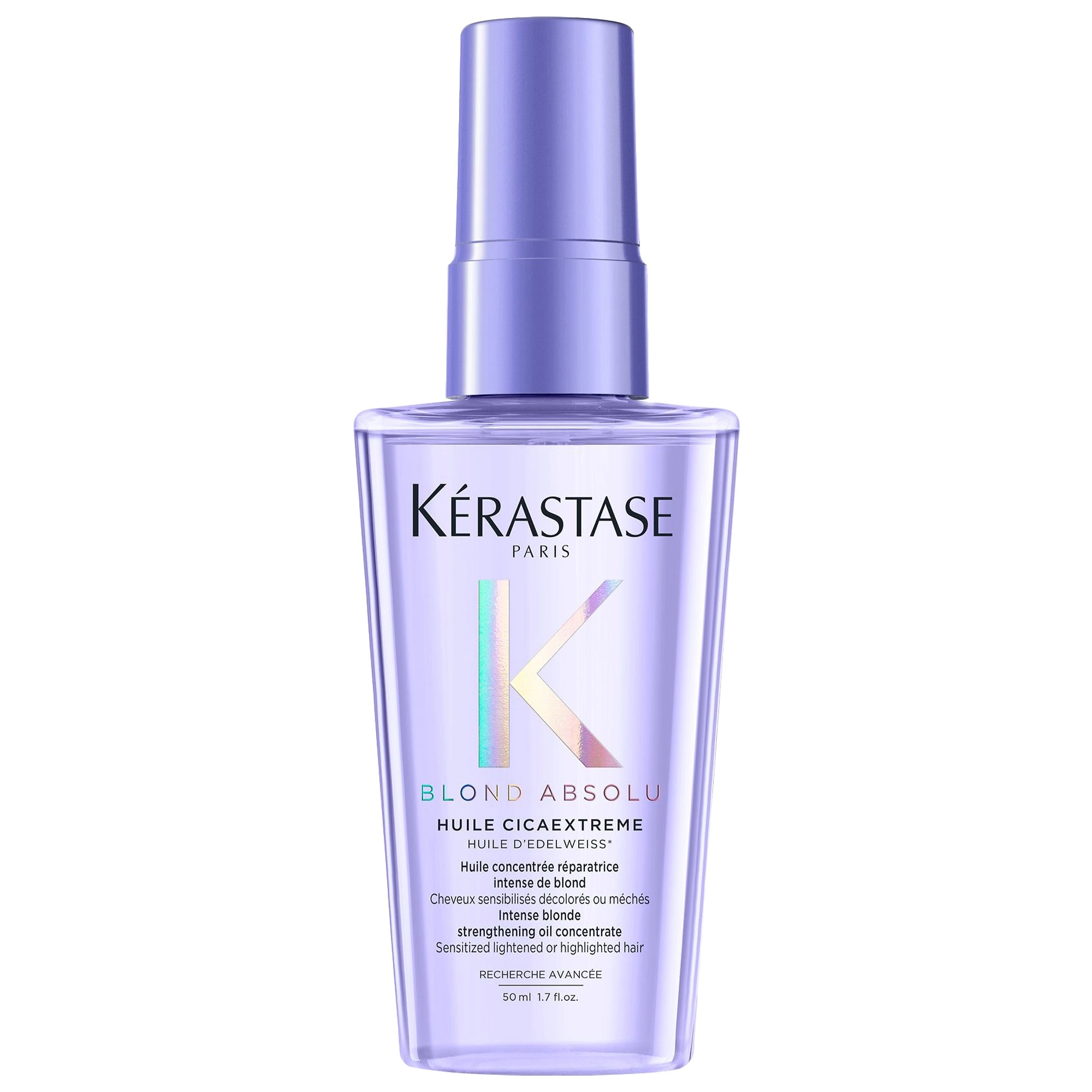 Indulge in the luxurious Kérastase Blond Absolu Strengthening Hair Oil for Very Damaged Blonde Hair. This lightweight oil is specially designed to restore and strengthen damaged, lightened hair. Say goodbye to frizz and split ends as you embrace a soft, high-shine finish.