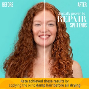 – On dry hair: Rub a small amount between your palms and apply to ends, working your way up to mid-shafts. Use to tame flyaways, manage frizz, enhance shine, or add hydration between washes.