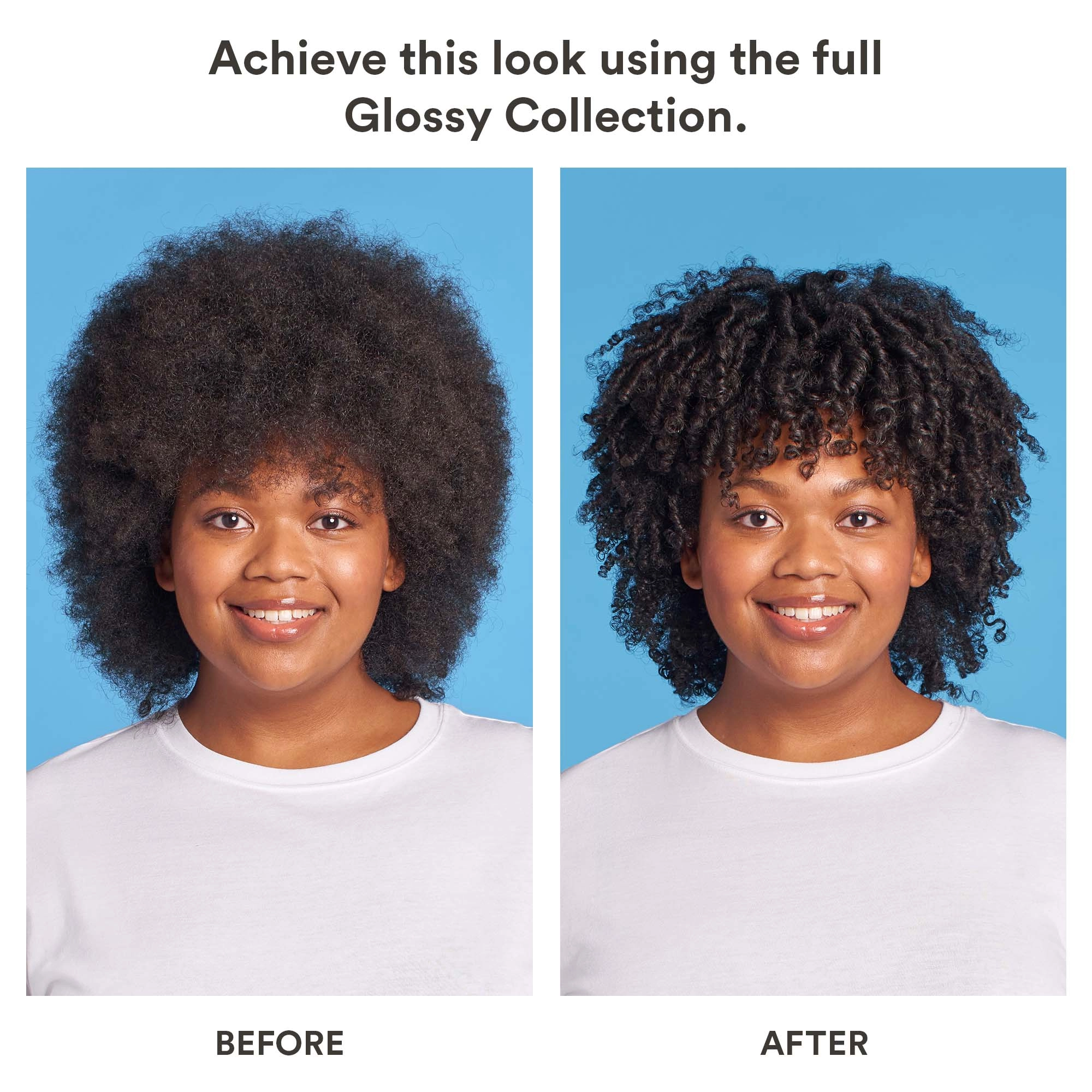 | Clinical Results | In a third-party testing lab, 86% of consumers saw shinier hair with more moisture when using the Glossy collection. |