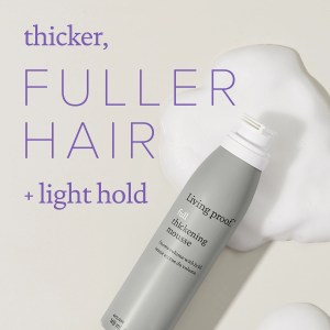 Transform your flat, lifeless hair into full, thick locks with Living Proof Full Thickening Mousse. This lightweight mousse is specially designed for fine, thin hair, giving it the look, feel, and behavior of full, thick hair. Powered by Living Proof’s patented thickening molecule, PBAE, this innovative formula deposits a flexible, micro-pattern of thickening points on each strand, adding just the right amount of natural texture. Say goodbye to flat, limp hair and hello to voluminous, bouncy locks that last all day.