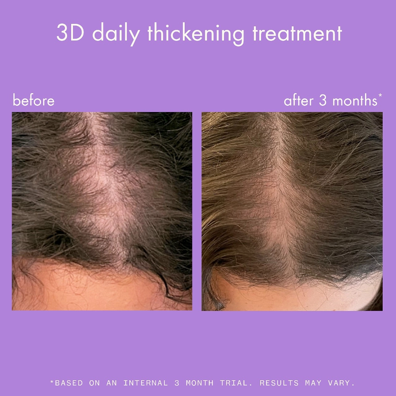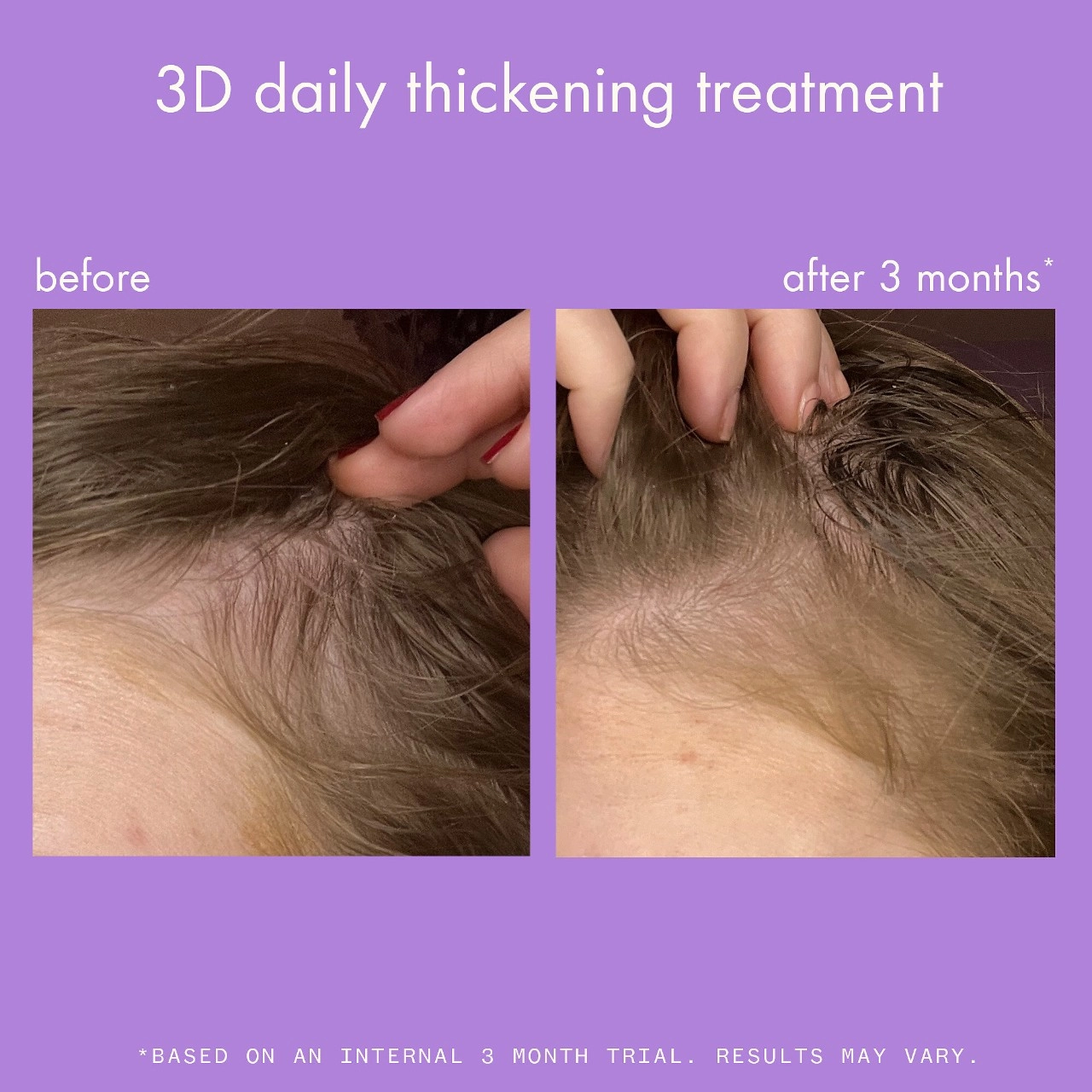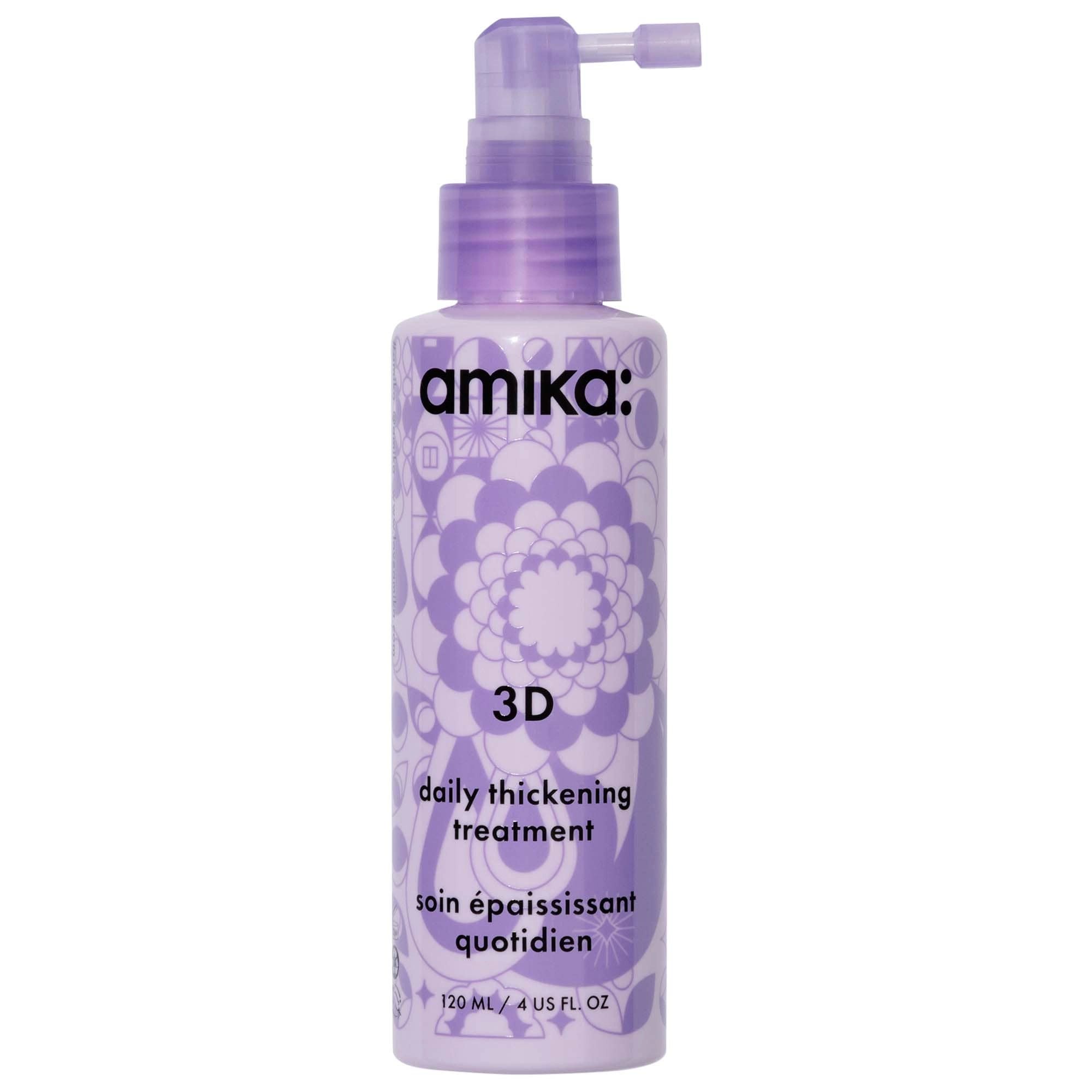 To use the Amika 3D Daily Leave-In Hair Thickening Treatment, simply spray it onto dry or towel-dried hair one to two times a day, focusing on the root and scalp area. Massage it into your scalp to stimulate blood circulation. There’s no need to rinse it out. Style your hair as usual. For best results, pair it with the 3D Volume and Thickening Shampoo and Conditioner (each sold separately) and use the 3D collection consistently for three months.