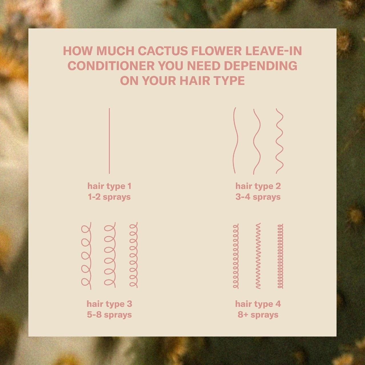 To use the CACTUS FLOWER Leave In Conditioner, mist lightly throughout damp hair prior to brushing and heat styling. There’s no need to rinse it out. The Cactus Flower supplies essential vitamins and minerals to keep individual hair follicles healthy, while the Prickly Pear Extract delivers intense hydration with its high content of vitamin E, omega fatty acids, and antioxidants.