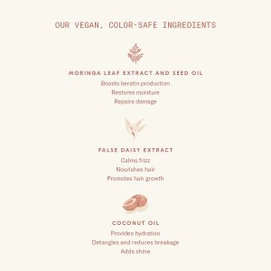| Highlighted Ingredients | – Moringa Leaf Extract: Rich in vitamins and antioxidants that boost keratin production, helping bring moisture to dry hair and scalp. – Coconut Oil: Hydrates hair, protects from breakage, calms frizz, and detangles. – False Daisy Extract: Has antimicrobial properties to help reduce flakiness and calm an irritated scalp. |
