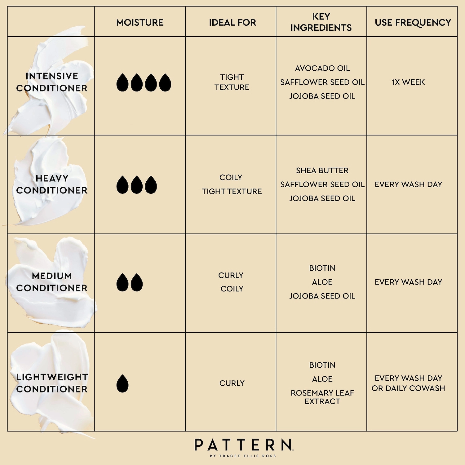 | Hair Texture | Wavy, Curly, and Coily |