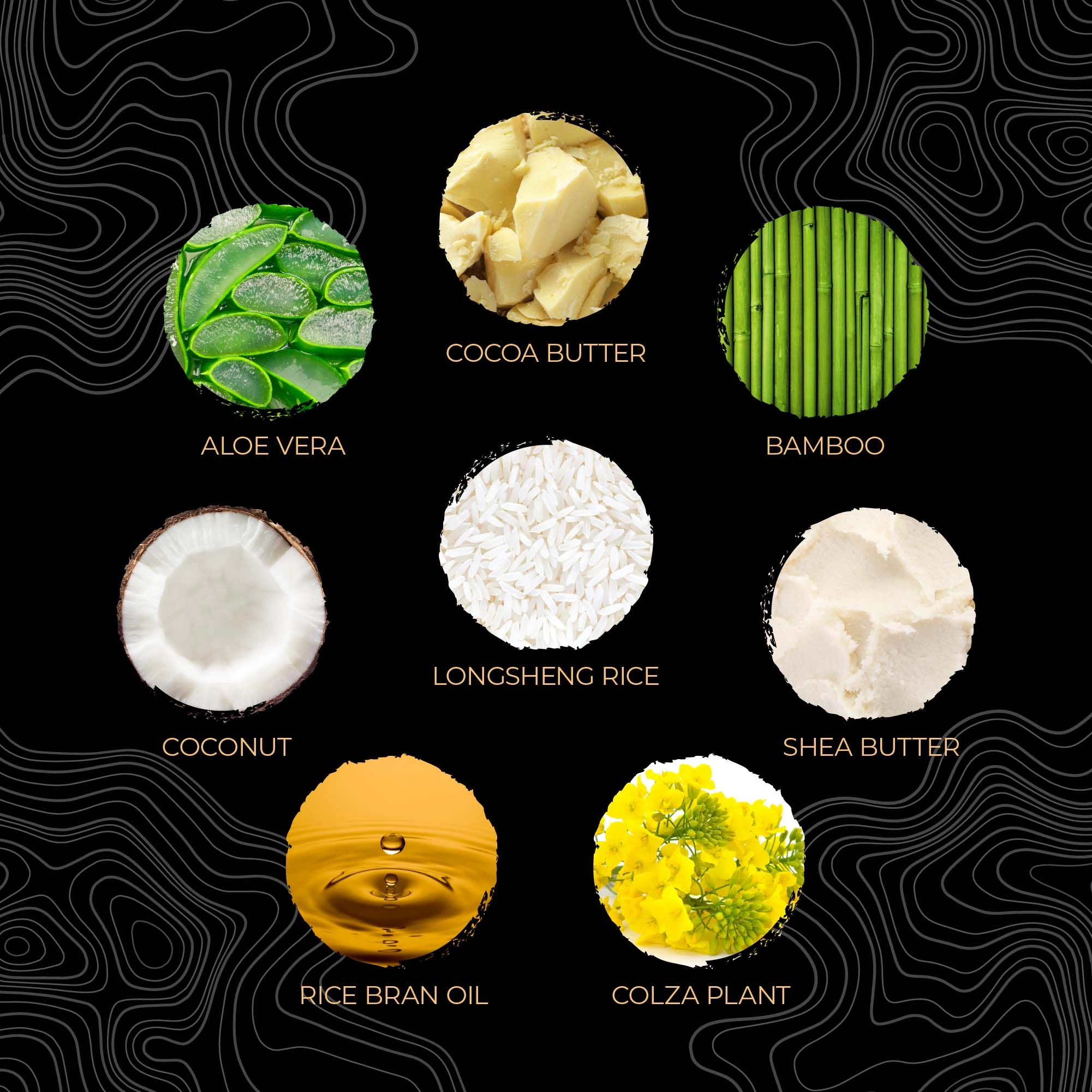 Cetyl Alcohol, Behentrimonium Methosulfate, Theobroma Cacao Seed Butter, Butyrospermum Parkii Butter, Oryza Sativa (Longsheng Rice) Water, Stearic Acid, Bambusa Arundinacea Stem Extract, Brassica Oleracea Italica Seed Oil, Calcium Pantothenate, Inositol, Oryza Sativa Bran Oil, Water/Aqua/Eau, Lavandula Angustifolia Oil, Fragrance/Parfum, Rosa Canina Fruit Oil, Hydrolyzed Vegetable Protein, Aloe Barbadensis Leaf Juice, Tocopheryl Acetate, Simmondsia Chinensis Seed Wax, Oryza Sativa Flour, Lactobacillus/Radish Root Ferment Filtrate