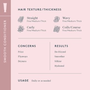 Transform your coarse and textured hair with Virtue Smooth Conditioner. This powerful daily treatment eliminates frizz, locks out humidity, and adds shine for hair that looks and feels amazing. With its unique blend of Pink Pomelo, Phospholipids, and Gotu Kola, this conditioner hydrates, smooths, and promotes strength and luster.