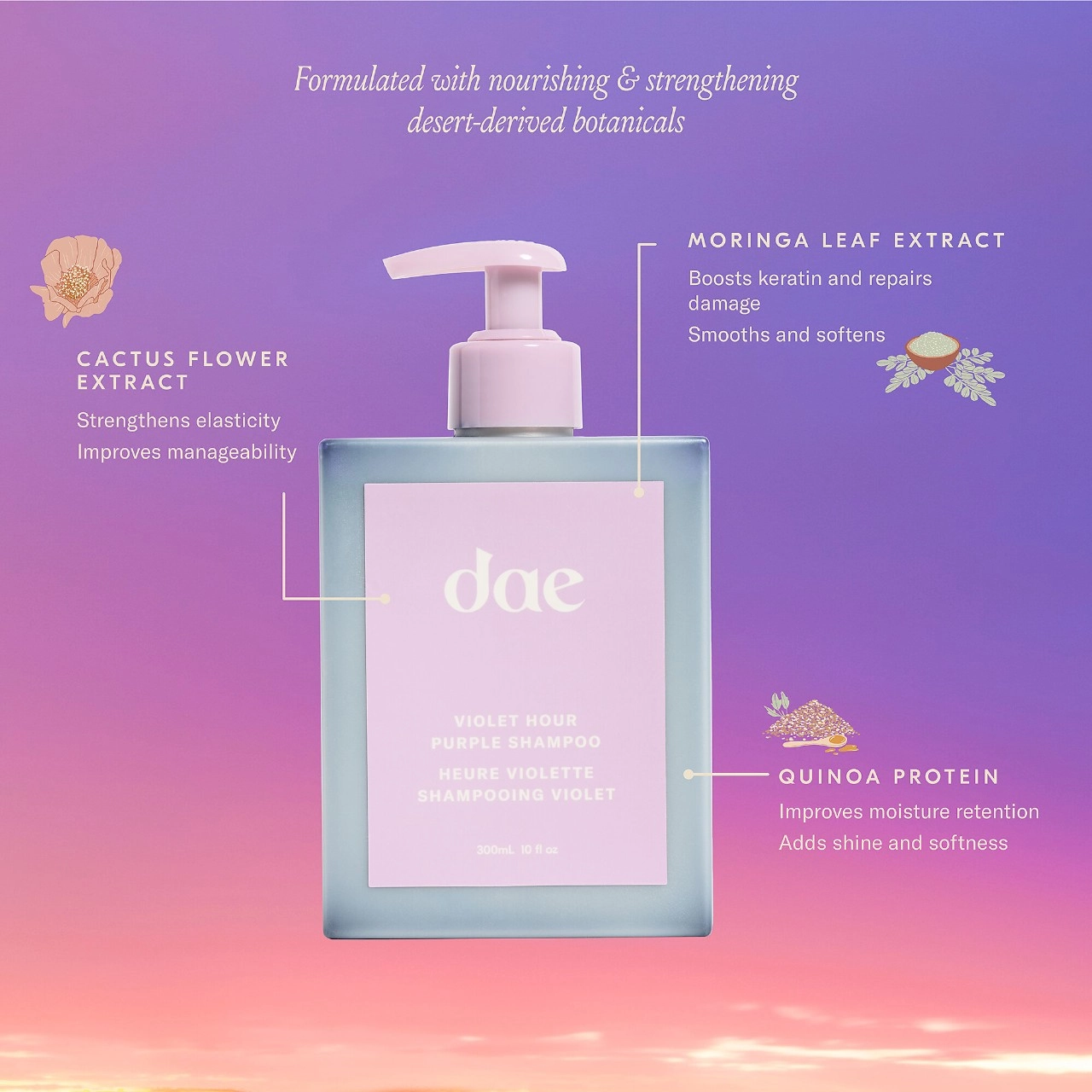 What are you waiting for? Experience the Dae Violet Hour Purple Shampoo and say goodbye to brassiness and hello to vibrant, shiny hair!