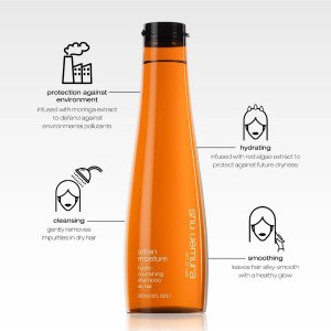 - Follow with shu uemura’s Urban Moisture Conditioner or Urban Moisture Hair Mask (each sold separately) for a complete professional regimen to receive maximum hydrating benefits for dry hair.