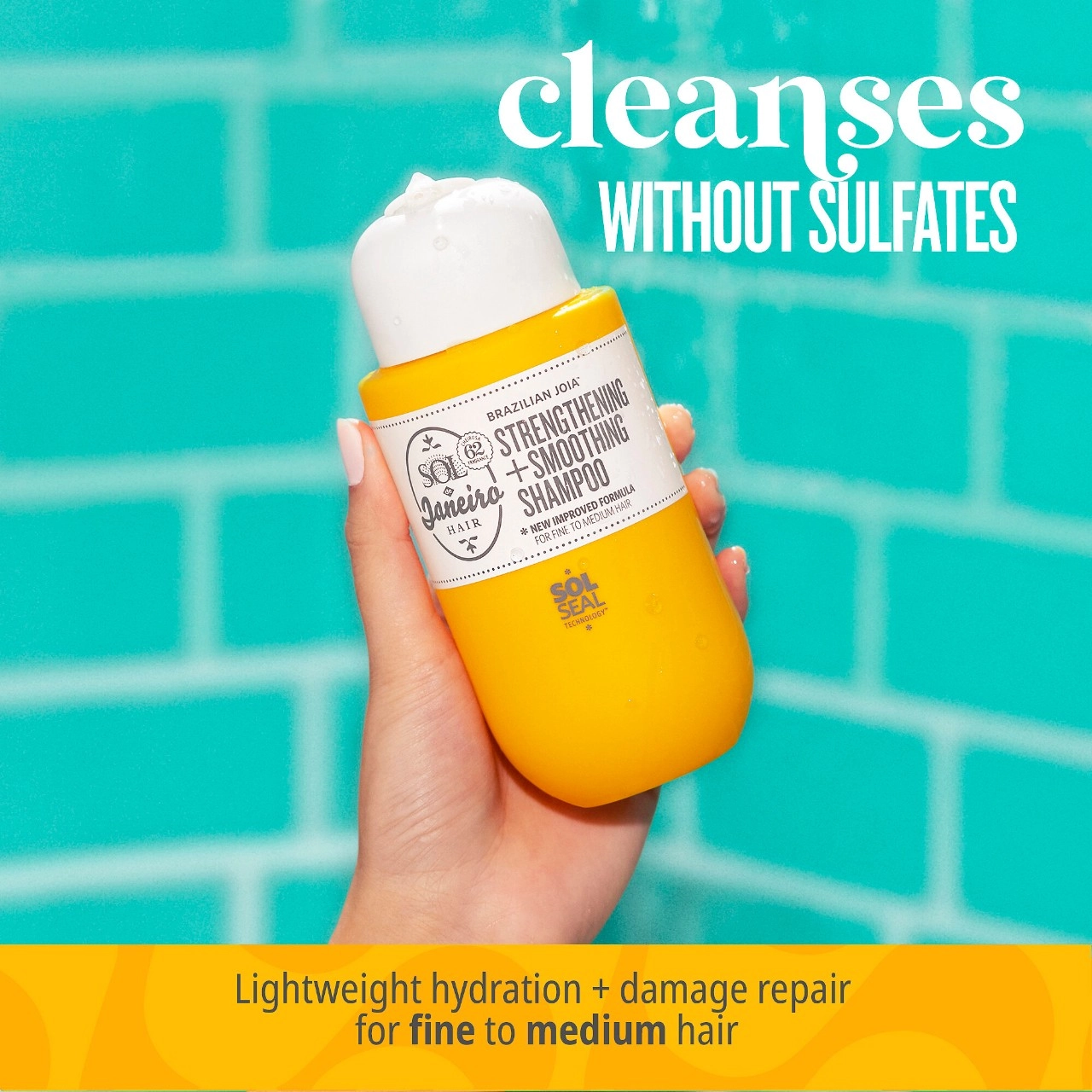 Experience the transformative power of Sol de Janeiro Brazilian Joia™ Strengthening + Smoothing Shampoo. This sulfate-free shampoo is specially formulated to repair and hydrate your hair, leaving it soft, healthy-looking, and full of vitality.