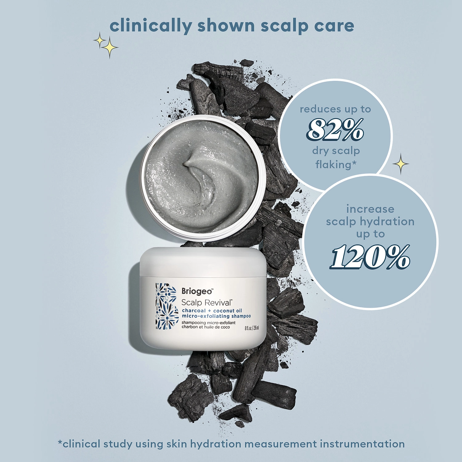 Experience the power of Briogeo Scalp Revival Charcoal + Coconut Oil Micro-exfoliating Shampoo. This mini-sized shampoo is perfect for on-the-go cleansing and scalp care. With its innovative blend of ingredients, it effectively detoxifies the scalp, removes impurities, and balances oil production.