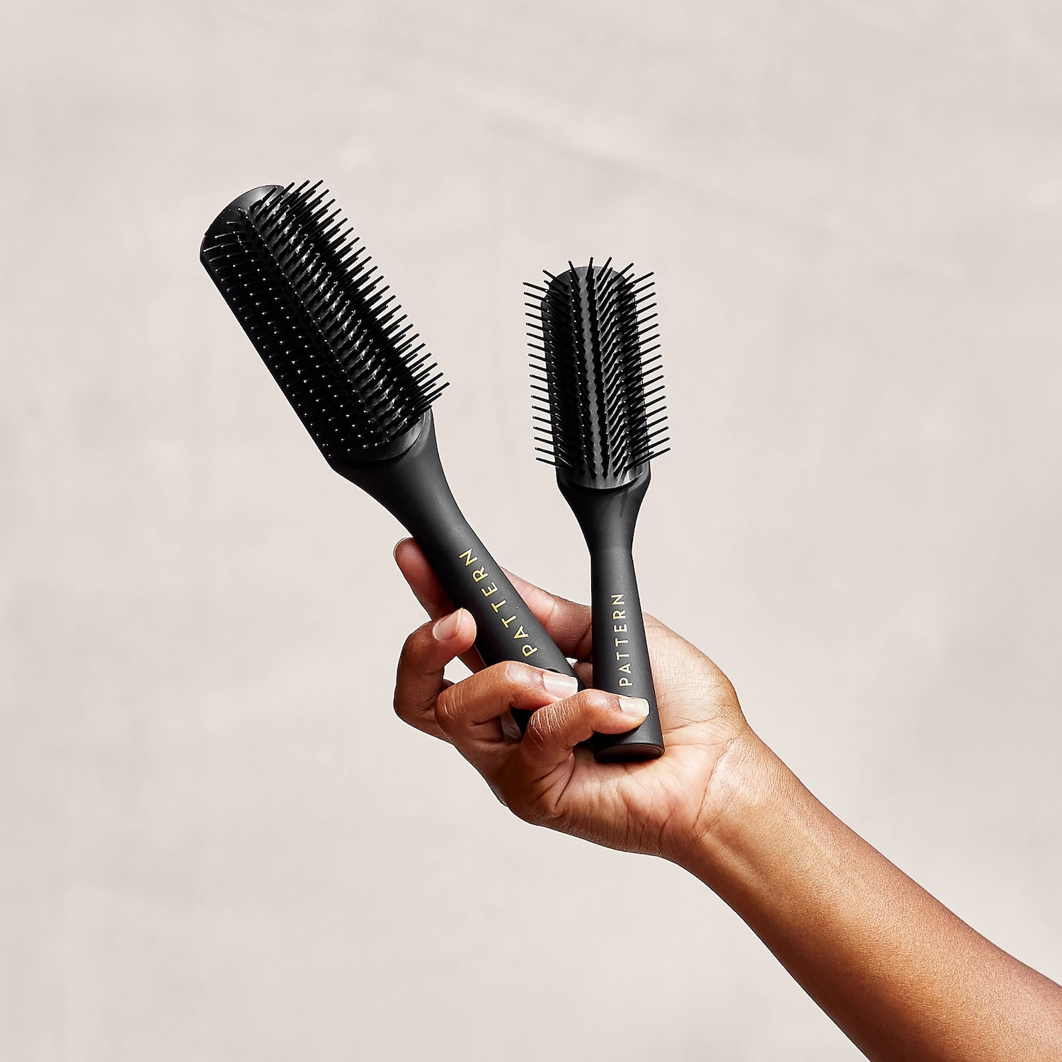 While applying a Pattern by Tracee Ellis Ross conditioner (sold separately) to sectioned wet hair, use the Pattern by Tracee Ellis Ross Shower Brush to gently work conditioner through hair, starting at the ends and working toward the roots. This technique helps distribute the conditioner evenly and ensures that each strand is coated for maximum hydration and curl definition.