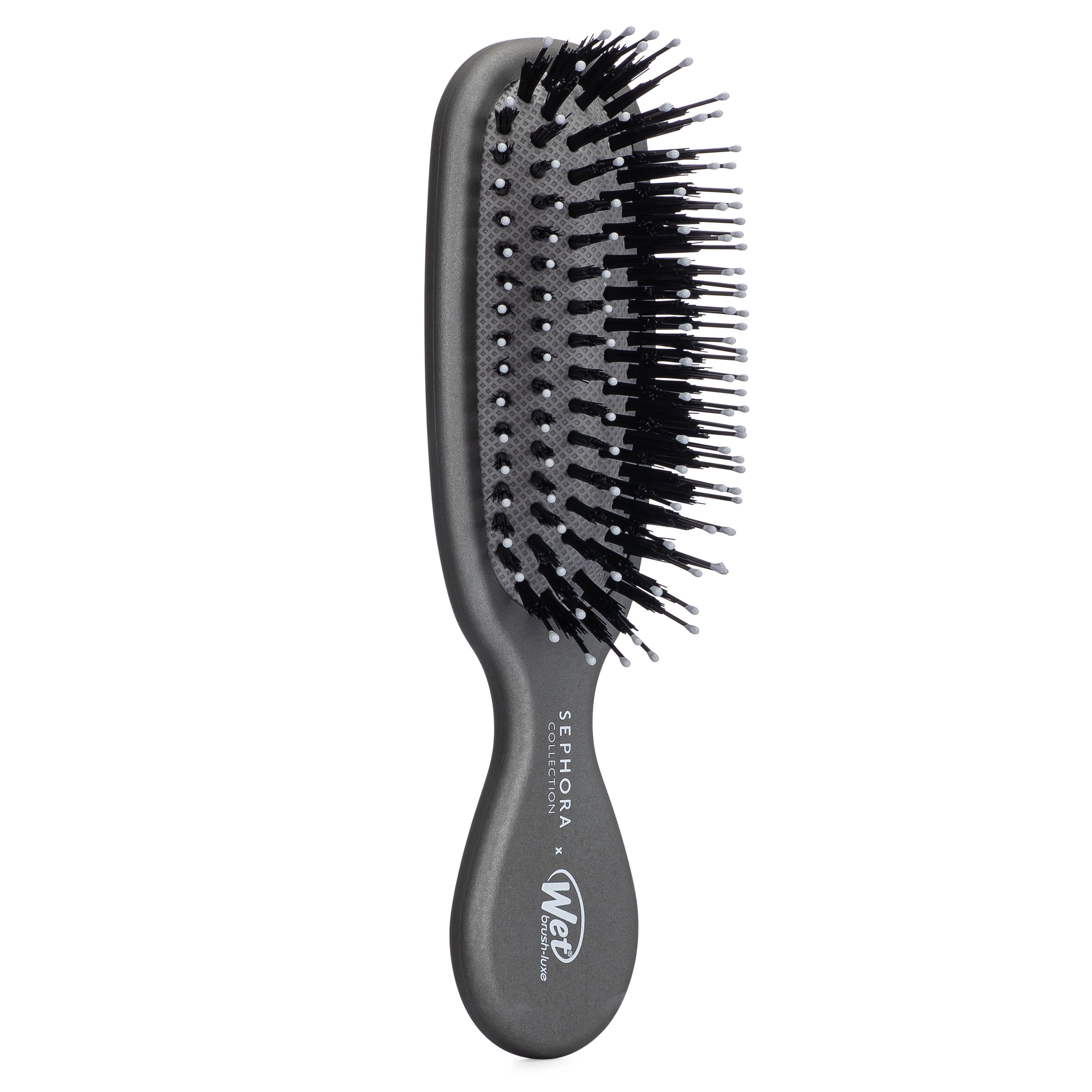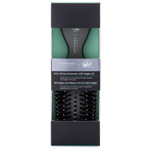 Enhance the shine of your hair with the SEPHORA COLLECTION SC x Wetbrush Mini Argan Oil Infused Shine Enhancer Hair Brush. This travel-friendly hair brush is infused with argan oil and features a unique blend of vegan boar bristles and IntelliFlex® bristles. It effortlessly glides through tangles, leaving your hair smooth and shiny.