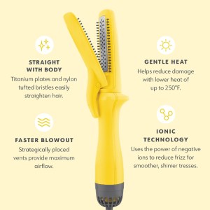 The Drybar The Straight Shot Blow Drying Flat Iron features ionic technology to reduce frizz and add shine while styling. The nylon, tufted bristles provide the perfect amount of tension to create an enhanced straightening effect.