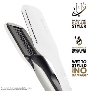 Transform your wet hair into a styled masterpiece with the ghd Duet Style 2-in-1 Hot Air Styler. This innovative styler is perfect for all hair types, including frizz-prone, curly, wavy, and straight hair. With its unique design, it increases shine and leaves your hair looking sleek and polished. Say goodbye to frizz and hello to salon-worthy hair every day.