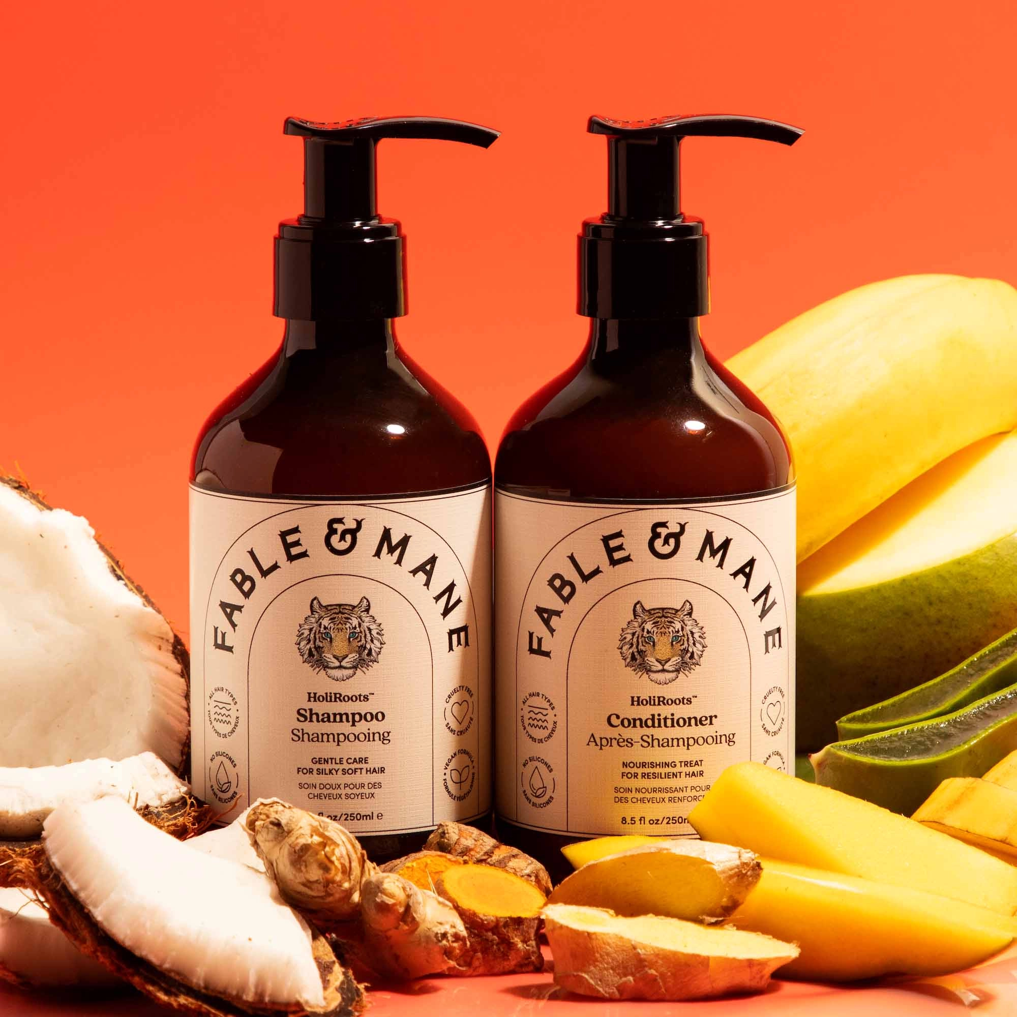 Experience the rejuvenating effects of the Fable & Mane HoliRoots™ Hydrating Shampoo and Conditioner Duo: