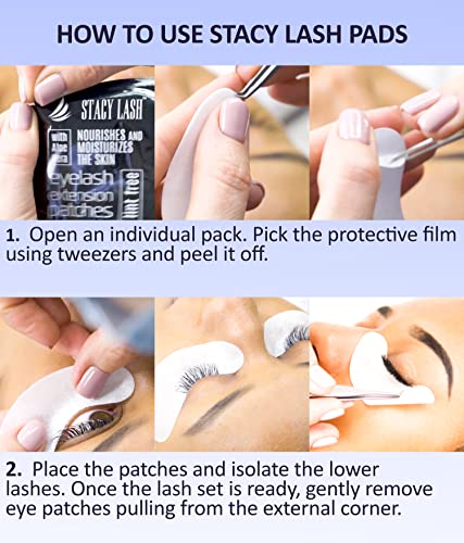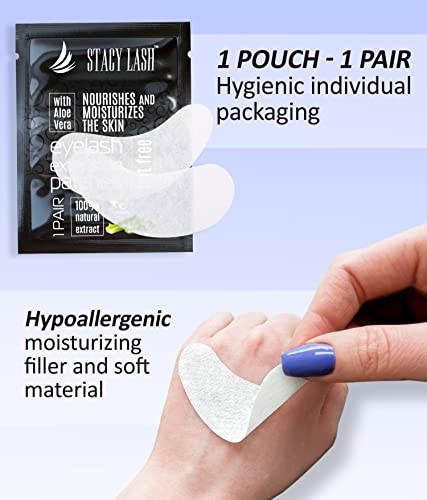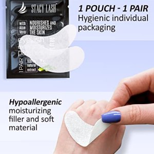 STACY LASH 100 Pair (Pack of 1) Lint free + 100% Natural aloe extract – gel under eye pads for eyelash extension and lifting by Stacy Lash are lint free, safe and friendly for skin. The eyepads are impregnated with Aloe Vera and Vitamin C to nourish and moisturize the skin.